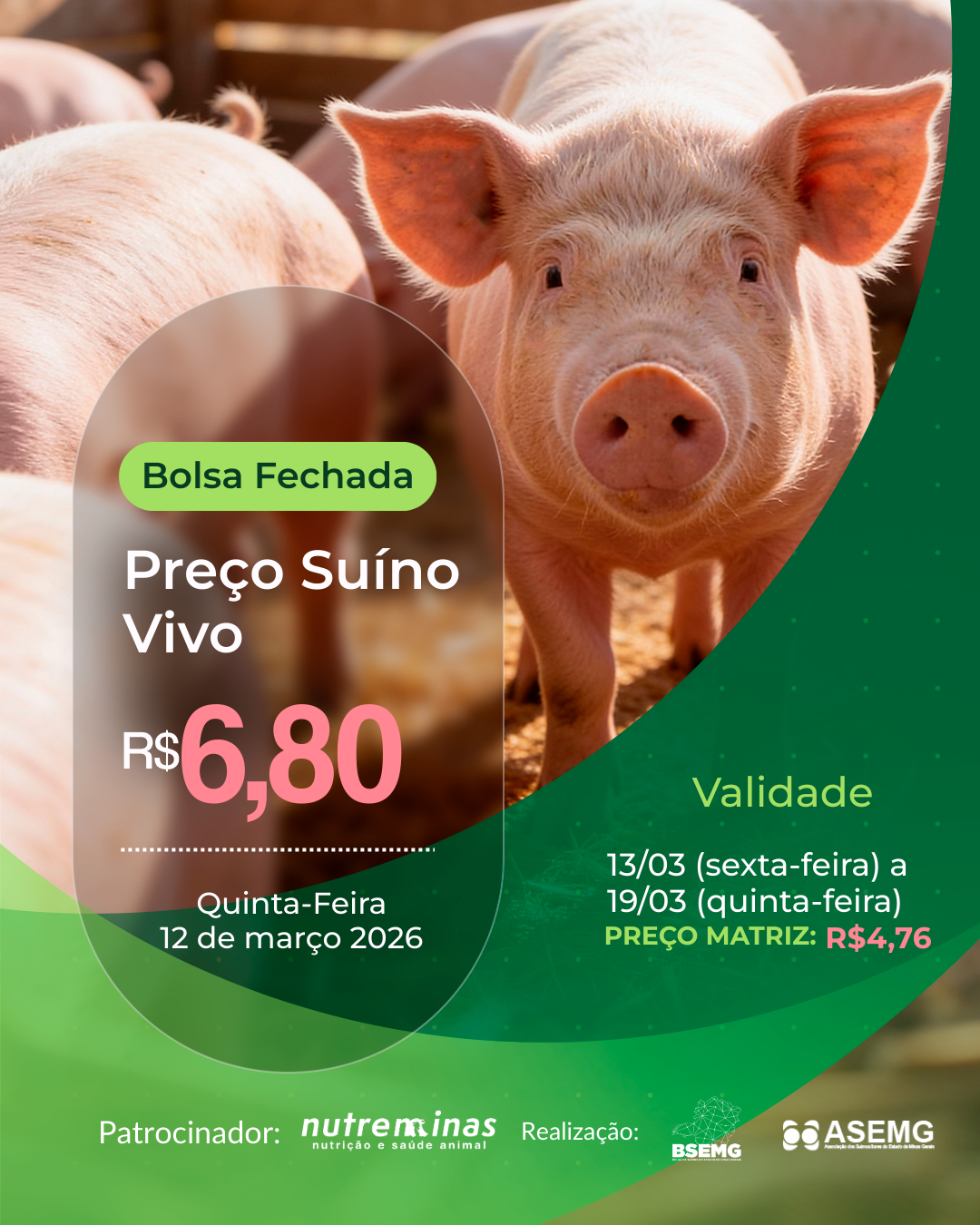 “A ASEMG se dedica diariamente ao suporte do suinocultor mineiro conte sempre com a ética e a transparência da nossa diretoria e toda a equipe. ASEMG para a organização, a união, e a prosperidade do setor.”