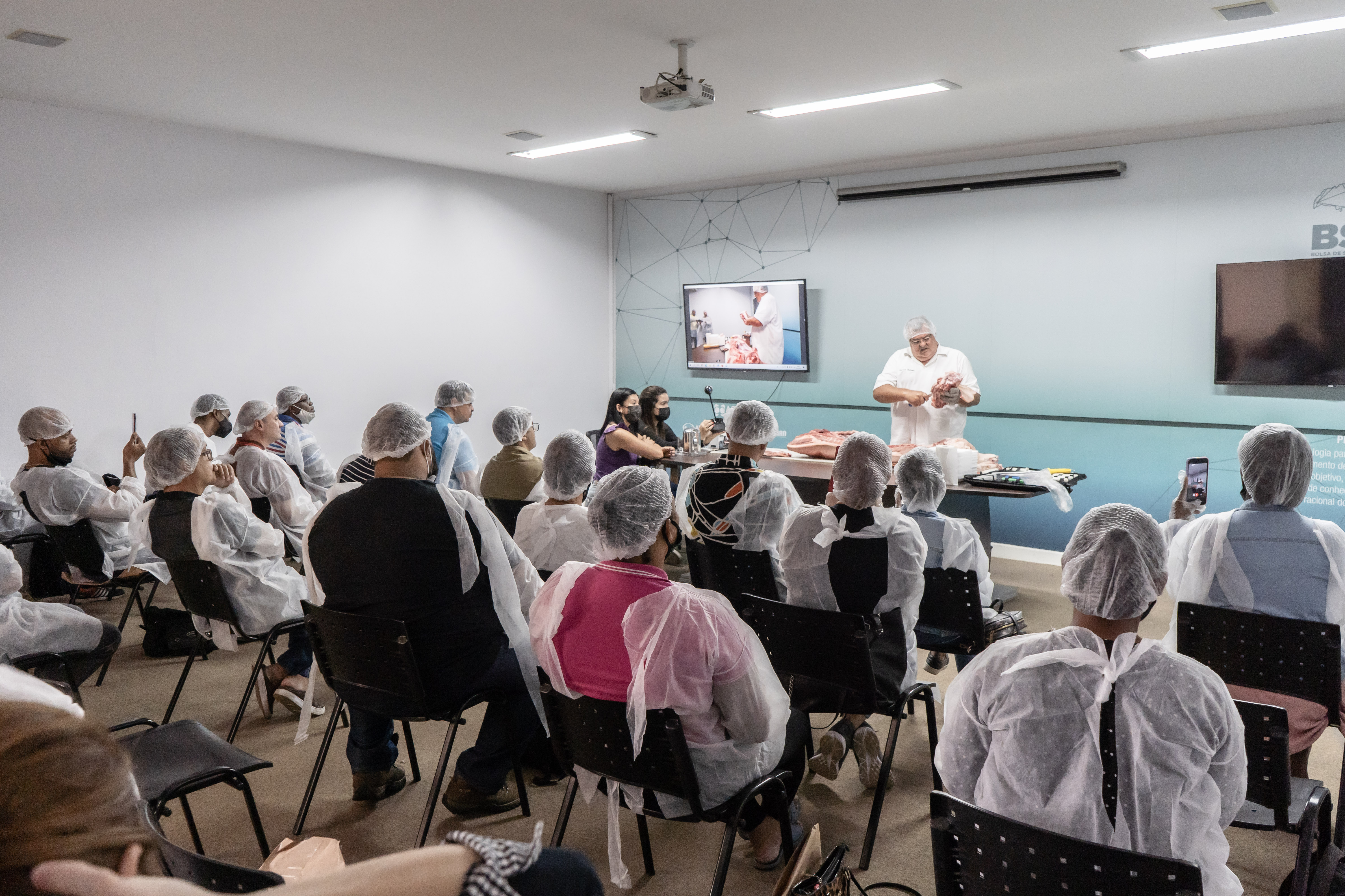O encontro foi dividido em dois momentos: na parte da manhã, foi realizado o curso de Cortes Suínos, com o engenheiro de alimentos e especialista em carne suína, Marcos Bisinella, onde os participantes do evento puderam conhecer os diversos cortes existentes a partir da carcaça suína bem com o aproveitamento integral de todas as partes do suíno.