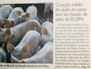 Fonte: Estado de Minas. Matéria produzida com dados ASEMG. Maior produtor e consumidor mundial de carne suína, a China deve fechar 2019 com queda de 25% na produção, provocada pela epidemia de peste suína africana que assola o país, além de alguns vizinhos asiáticos, desde meados de 2018. Os efeitos devastadores da doença levaram […]