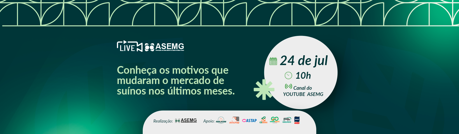 Em celebração ao Dia Nacional do Suinocultor, comemorado no dia 24 de julho, a Associação dos Suinocultores do Estado de Minas Gerais (ASEMG), organizou uma live informativa que atraiu a atenção de muitos interessados no setor. O evento contou com a presença de especialistas renomados, como Alvimar Jalles Médico Veterinário e Consultor de Mercado da […]