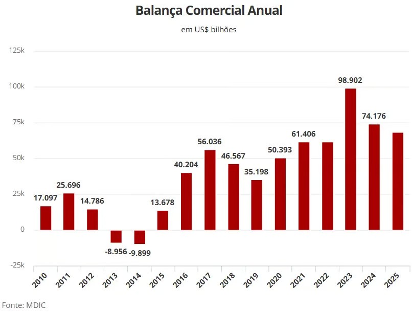 No fim das contas, o agro foi decisivo para manter o Brasil no azul. O setor compensou déficits em outras áreas e sustentou o superávit comercial de US$ 68,3 bilhões em 2025.